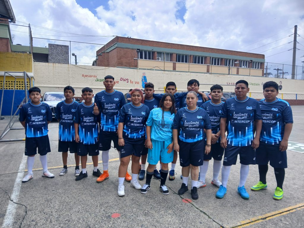 entusiasmo un partido amistoso de fútbol en las instalaciones del Liceo Salesiano,